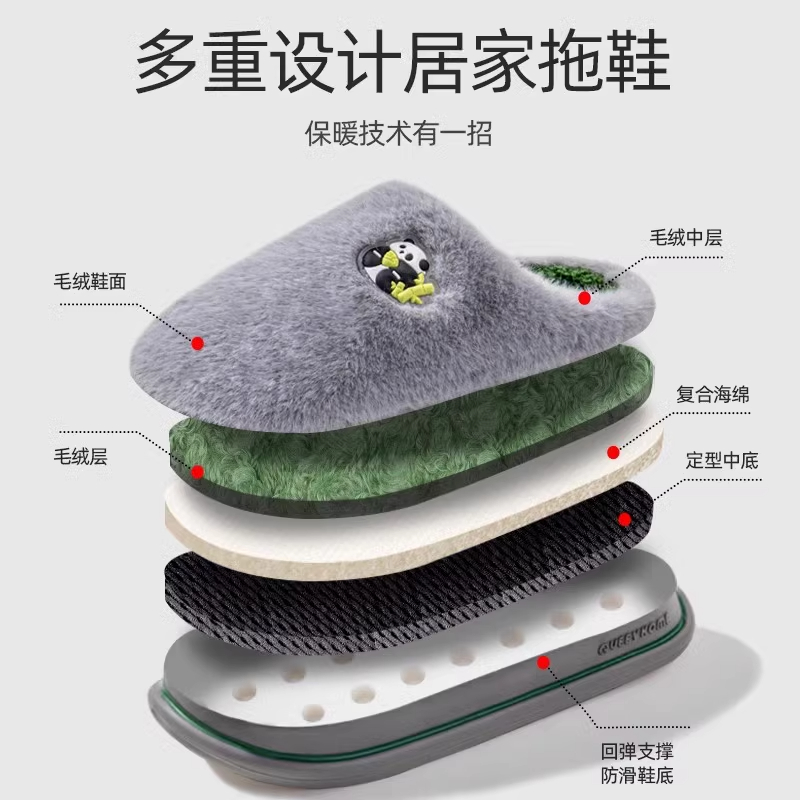 保暖毛绒居家室内防滑情侣棉拖鞋 踩屎感棉拖鞋 2025新款 秋冬季 男士