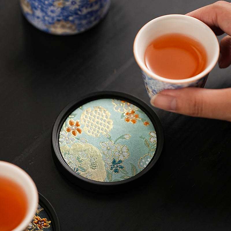 弘博布艺吸水杯垫国风新中式 复古功夫茶具速干茶杯托茶桌隔热杯垫