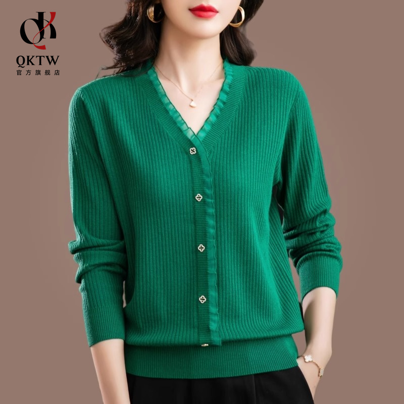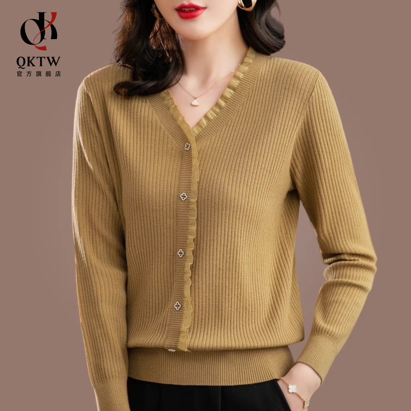T恤女秋冬季 显瘦气质减龄打底衫 2025新款 修身 加厚保暖开衫 V领长袖