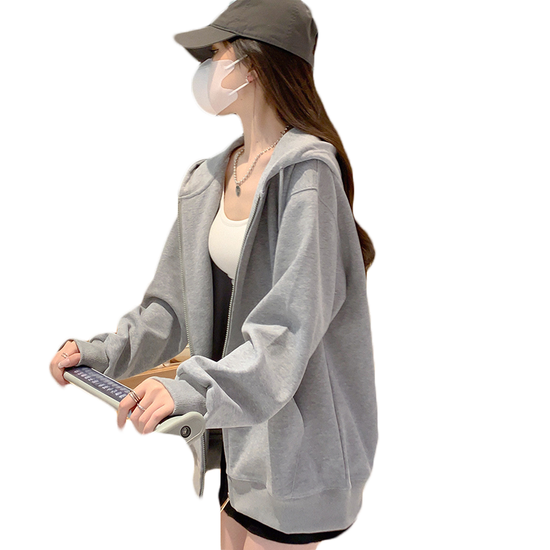 洋气开衫 美式 秋冬季 爆款 外套 复古灰色宽松加绒连帽卫衣女2025新款