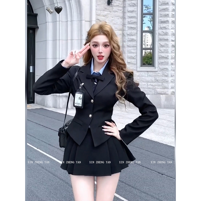 欣争艳 百褶半身裙套装 微胖mm甜辣学院风西装 衬衫 外套女秋季 XZY