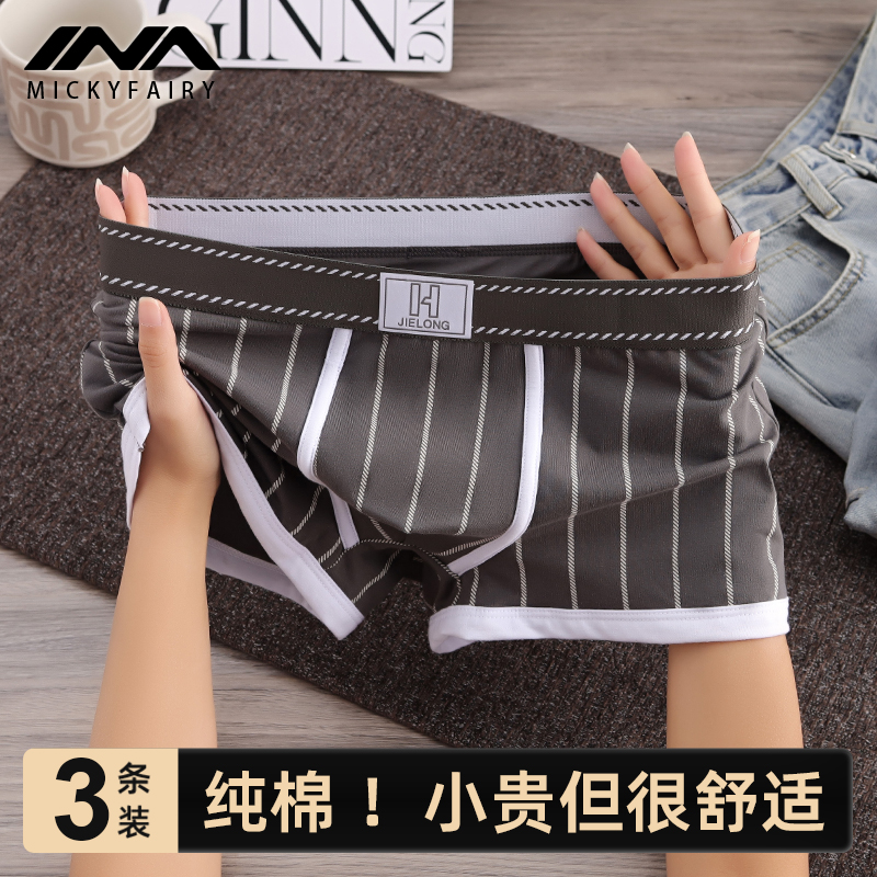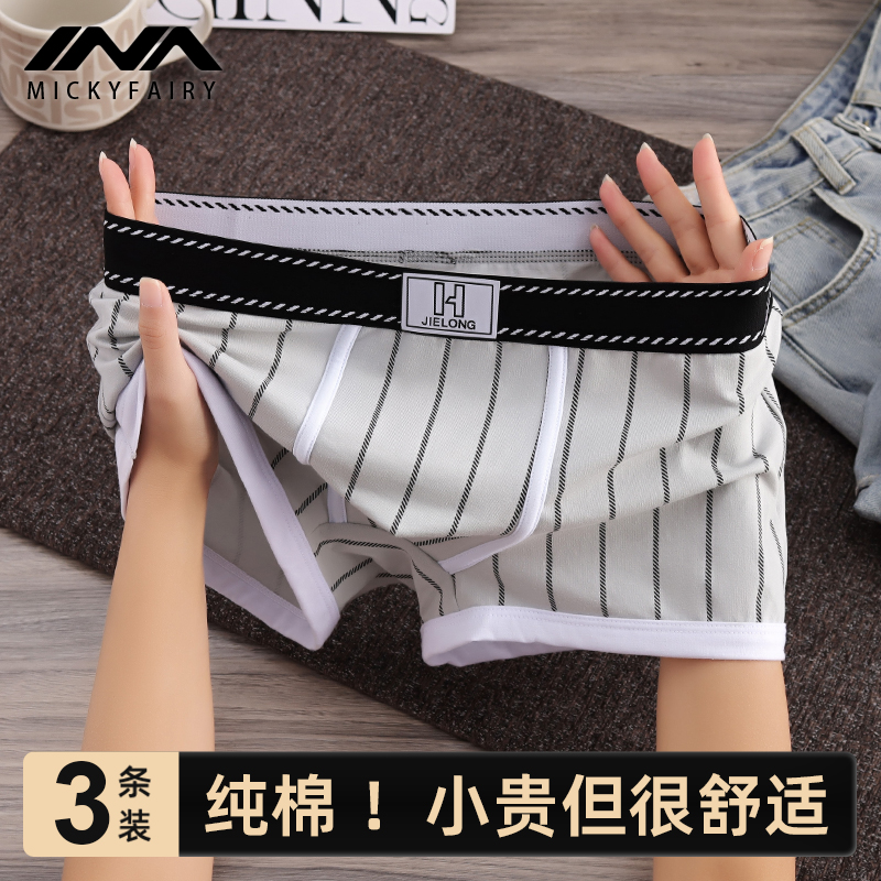 纯棉运动平角裤 男式 个性 潮流条纹男士 四角裤 男生新款 透气男款 内裤
