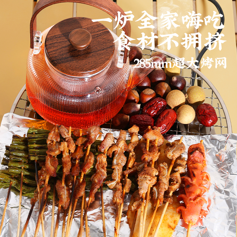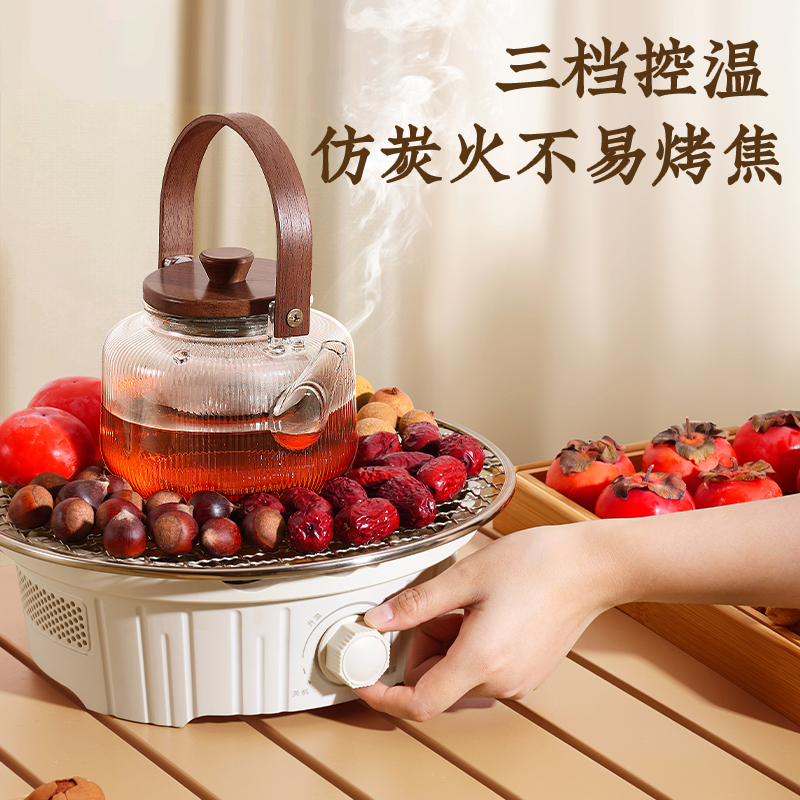宝选围炉煮茶电陶炉器家用室内2024新款 玻璃茶壶电烤火炉茶具套装