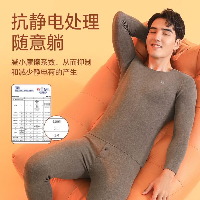 无痕棉毛衫 猫人秋衣秋裤 德绒自发热保暖内衣男款 套装 打底衬衣 男士
