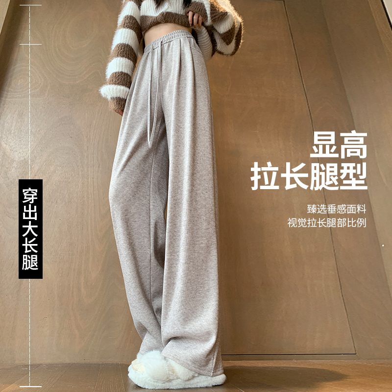 春秋垂感软糯高腰针织休闲裤 糯米裤 宽松阔腿裤 2025新款 子 女秋冬季