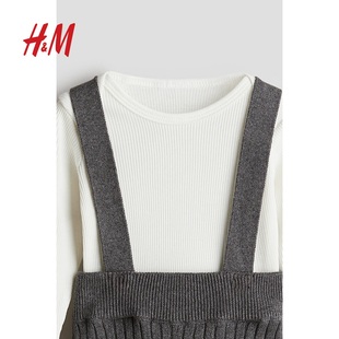 套装 叠穿内搭T恤木耳边牛仔阔腿裤 新款 蓝色镂空针织背心裙女秋季