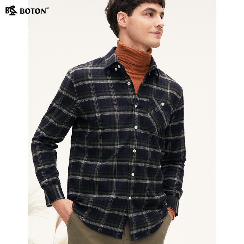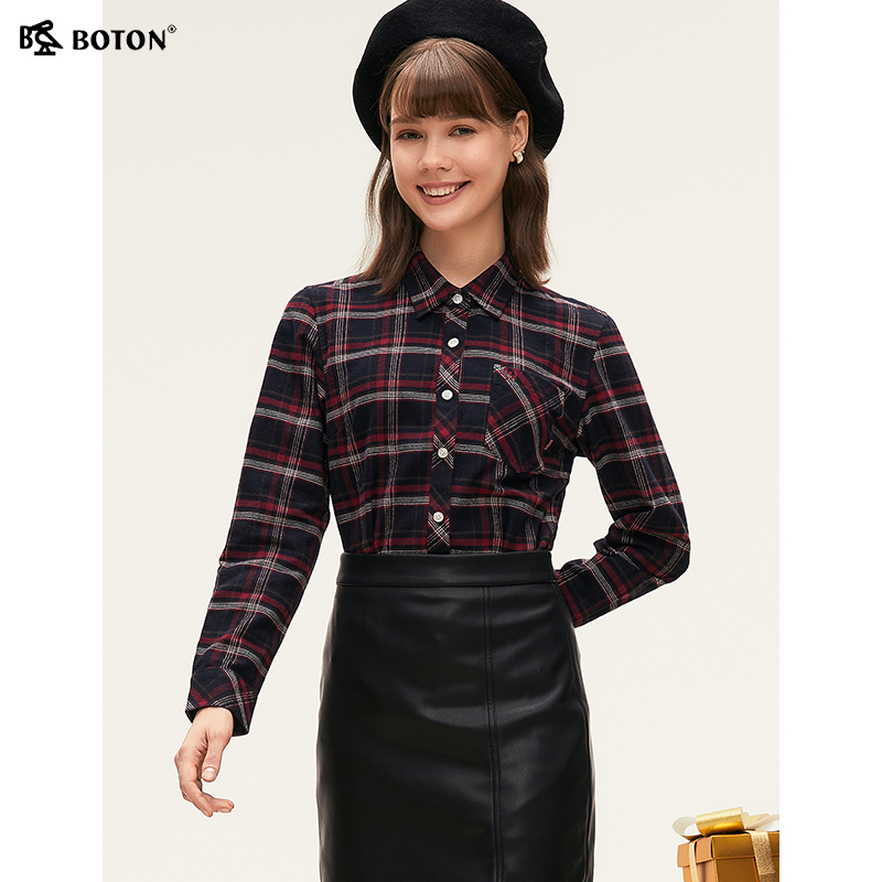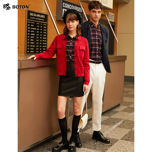 男女情侣款 波顿2025秋冬季 蓝红色格子衬衫 长袖 高端休闲衬衣 新款