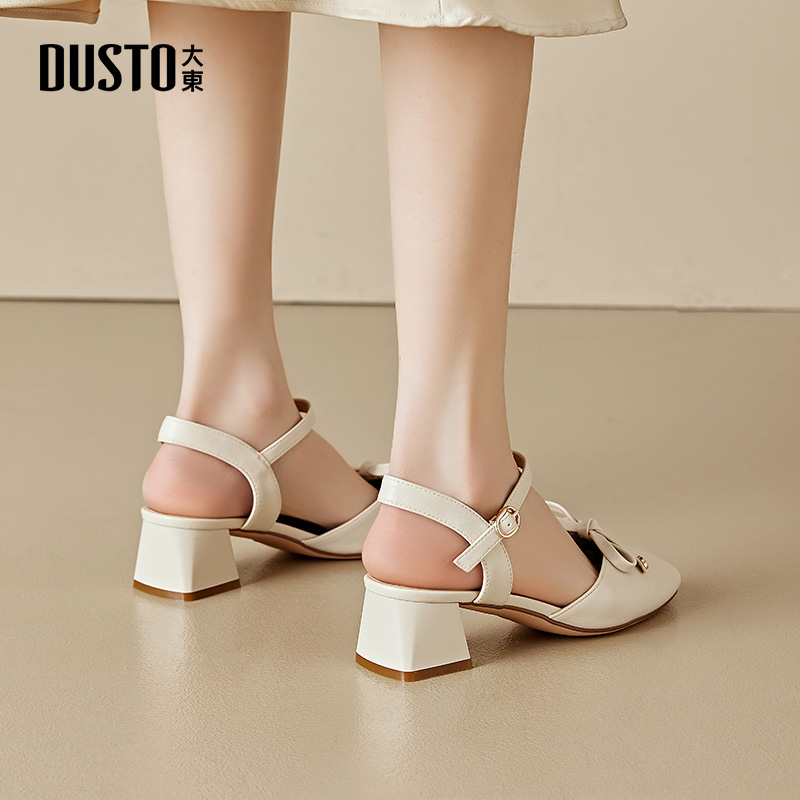 优雅蝴蝶结包头方头粗跟一字带后空凉鞋 新款 女 2025夏季 大东女凉鞋