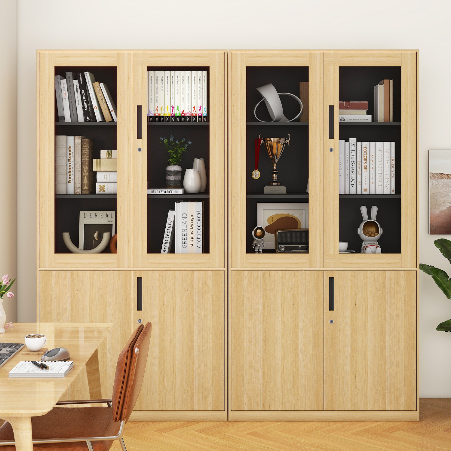 洛克菲勒钢制木纹书柜带玻璃门家用客厅展示柜防尘柜办公室文件柜