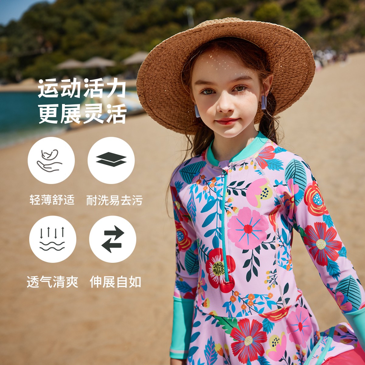 夏季 女童泳衣2024新款 洋气儿童长袖 连体式 ASKjunior 泳裙泳装 童装