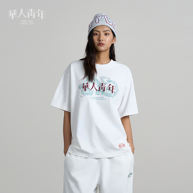 夏季 华人青年发泡盘龙短袖 t恤男纯棉国潮牌情侣宽松休闲上衣半袖