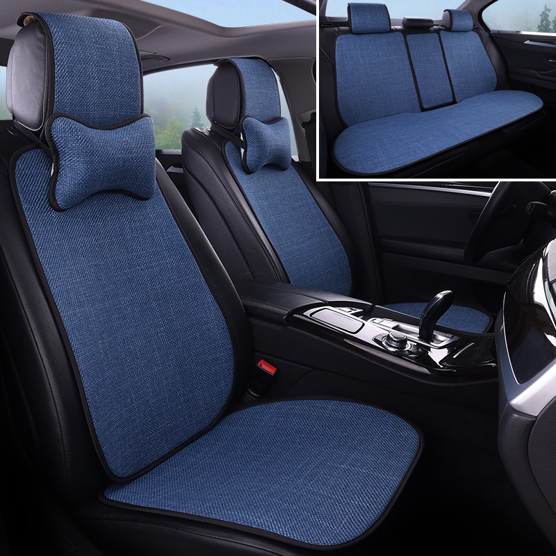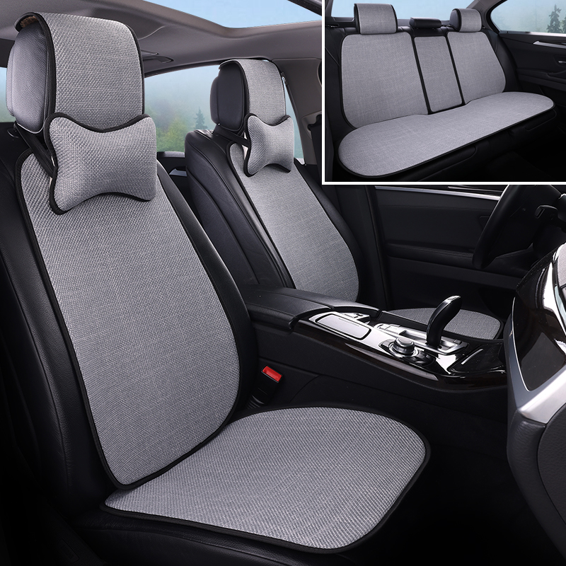 汽车坐垫四季 女车垫汽车座椅套 通用亚车麻座垫套全包棉透麻气夏季
