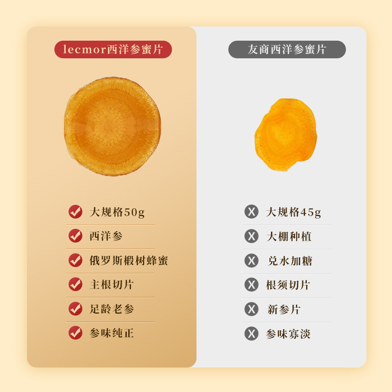 Lecmor西洋参蜜片蜂蜜人参含片即食蜜饯过年零食新年礼物 自营