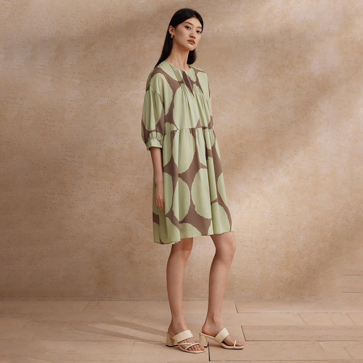 SNIDEL2025秋冬新品 连衣裙SWFO254132 甜美气质荡领斜肩印花短袖