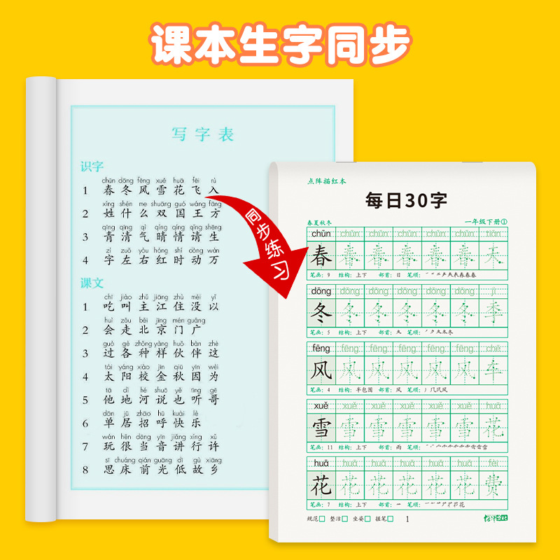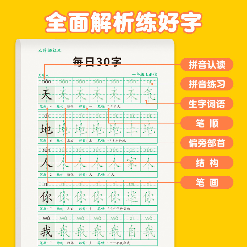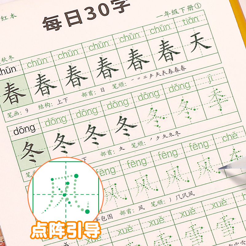 点阵每日30字生字儿童减压练习连点成线楷体一二三四五六年级上下册学期铅笔描红练字帖同步识字表写字表本纸 6小学生语文人教版