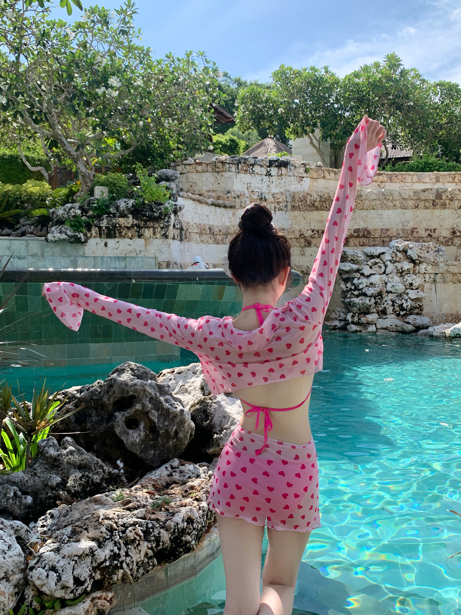 2025新款 温泉度假比基尼纯欲 夏粉红少女四件套泳衣女分体绑带裙式