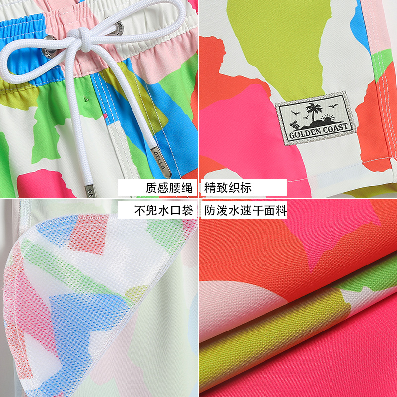 休闲海边玩水游泳裤 GELLA炫彩沙滩裤 男速干宽松拼接撞色印花短裤