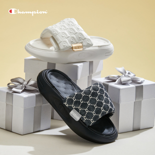 Champion冠军厚底拖鞋 小香风高级感外穿拖 女魔术贴一字拖2025夏季