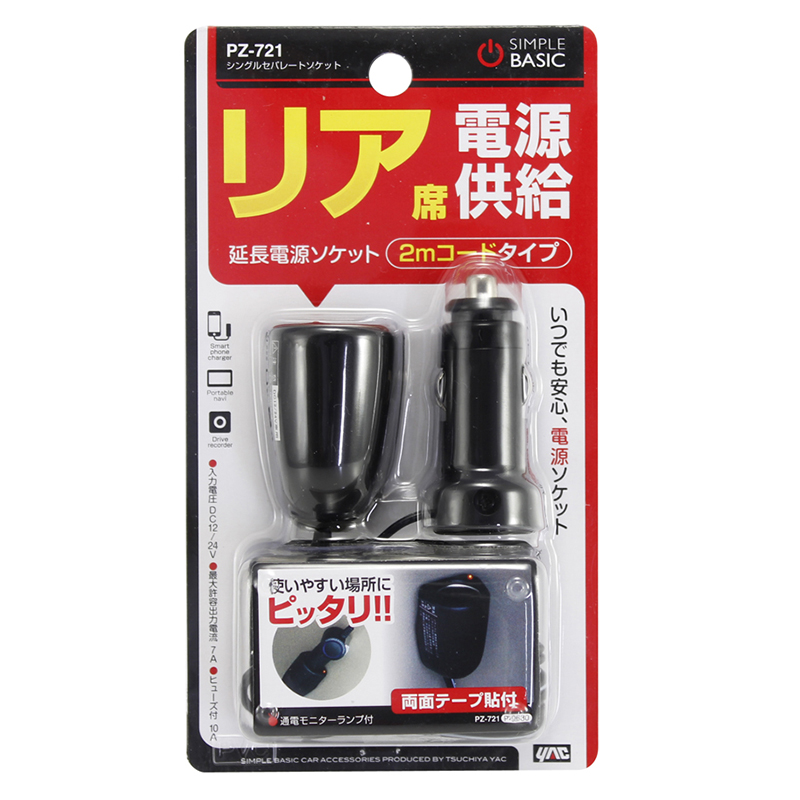 日本YAC车载点烟器插头延长线汽车点烟口孔加长线转接12v24v通用