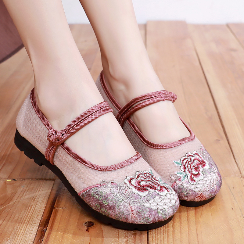 老北京布鞋 镂空网面妈妈女鞋 女网鞋 网纱复古汉服鞋 平底绣花鞋 夏季