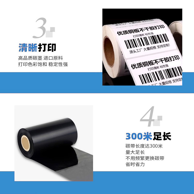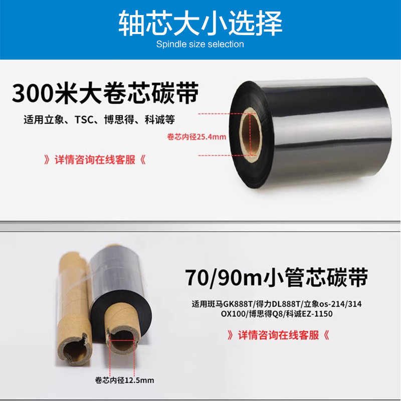标签纸贴纸热转印铜版 打印机色带增强基碳带水洗基树脂基碳带 条码 300m 蜡基混合基碳带卷 110
