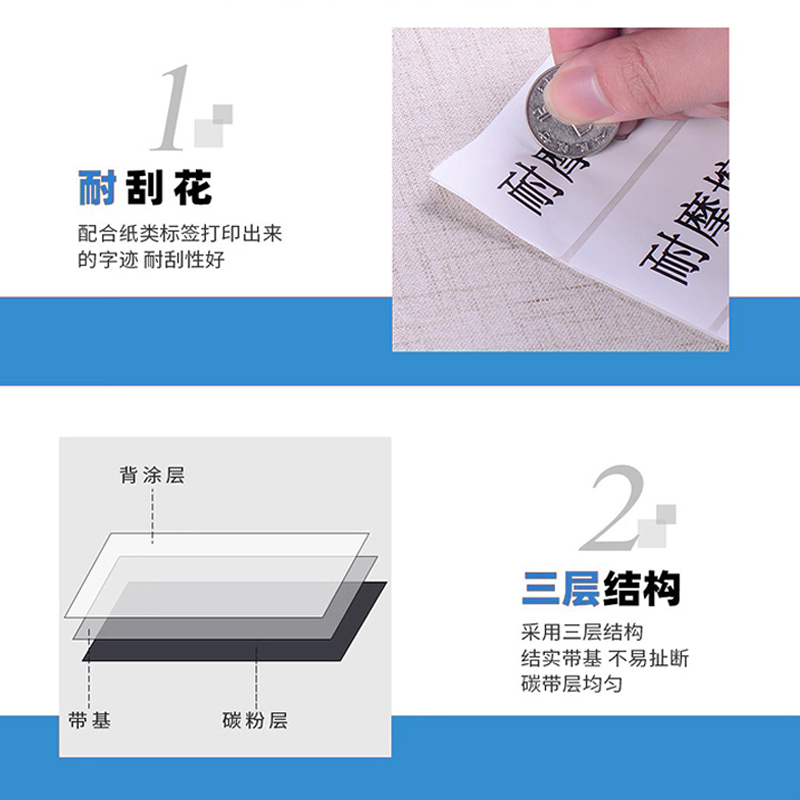 精臣B18 N1标签机专用色带配套碳带热转印标签打印机碳带树脂基碳带B18标签纸色带黑色白色红色蓝色绿色16米