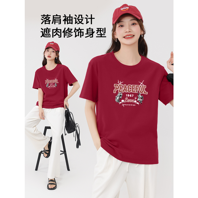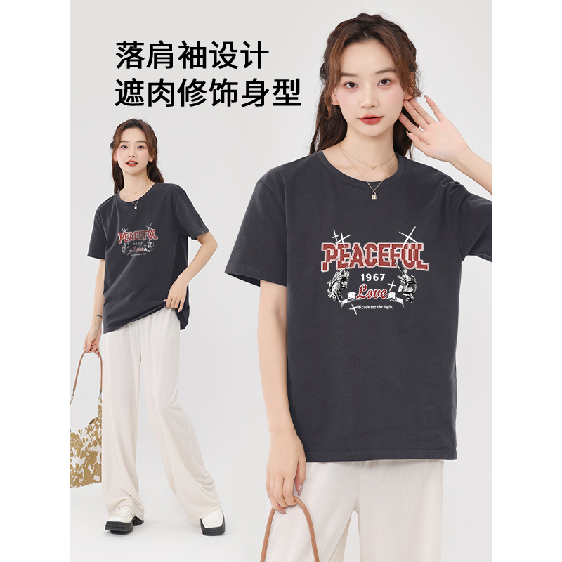 宽松显瘦纯棉正肩超好看上衣 夏季 JR真维斯黑色短袖 t恤女2025新款