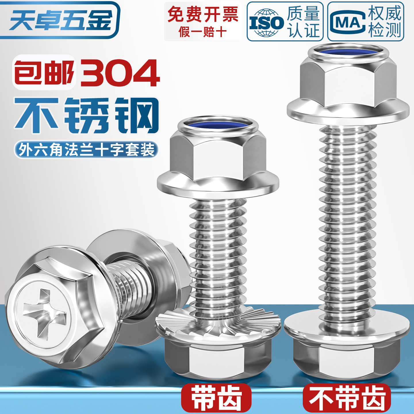 304不锈钢十字法兰面螺丝钉螺母组合套装 外六角螺栓防滑带垫 大全