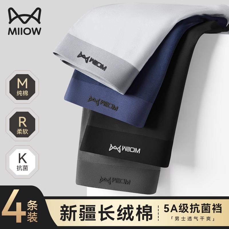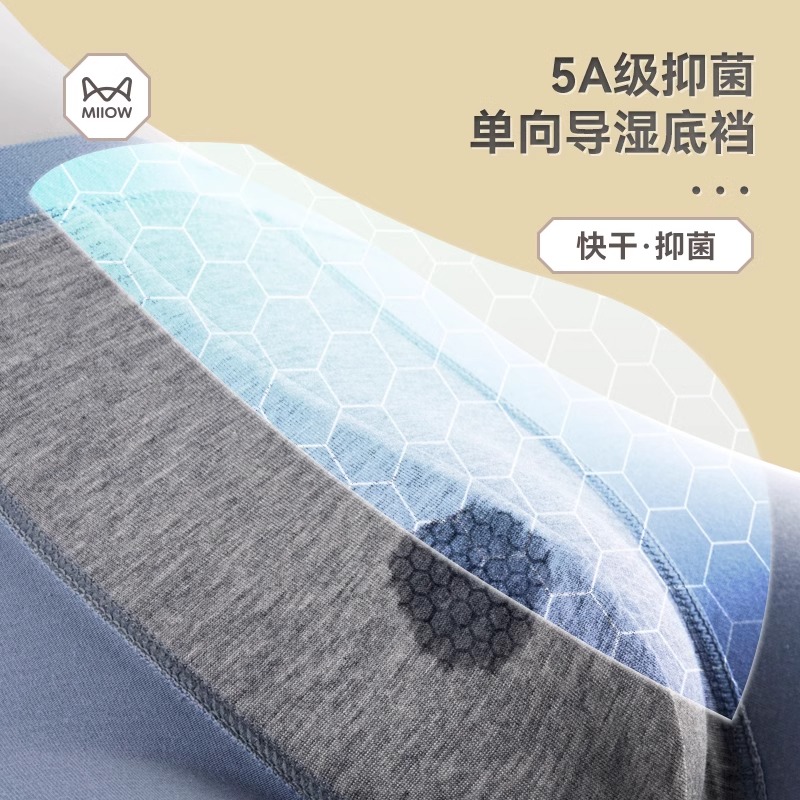 裤 猫人抗菌裆男士 运动纯棉裆平角大码 男冰丝无痕四角裤 青少年 内裤