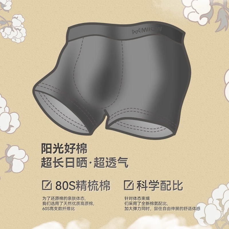 非莫代尔男生平角裤 纯棉裆四角裤 男式 短裤 有棵树男士 2025男款 内裤