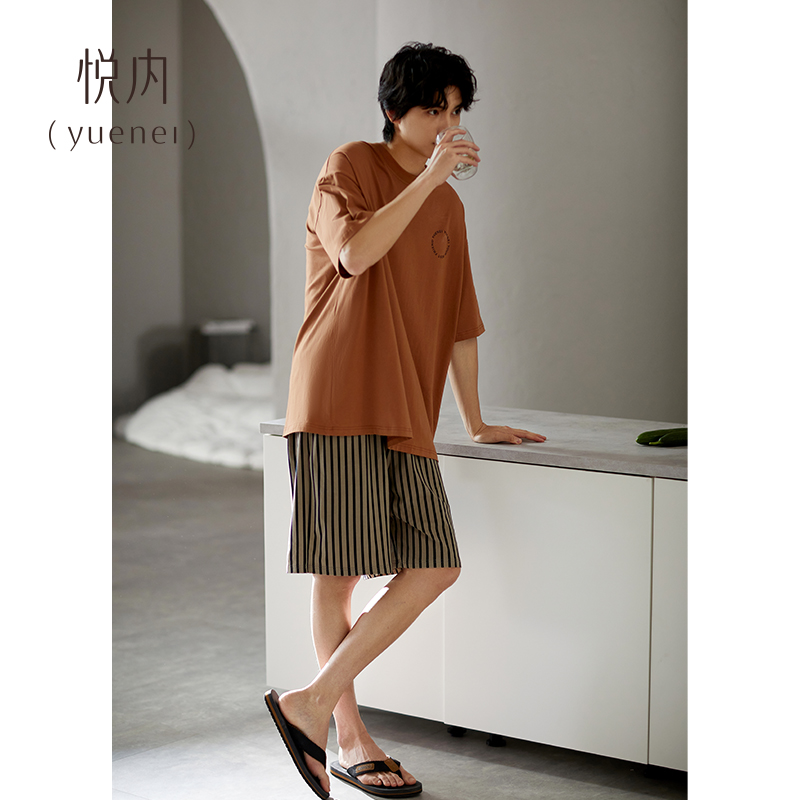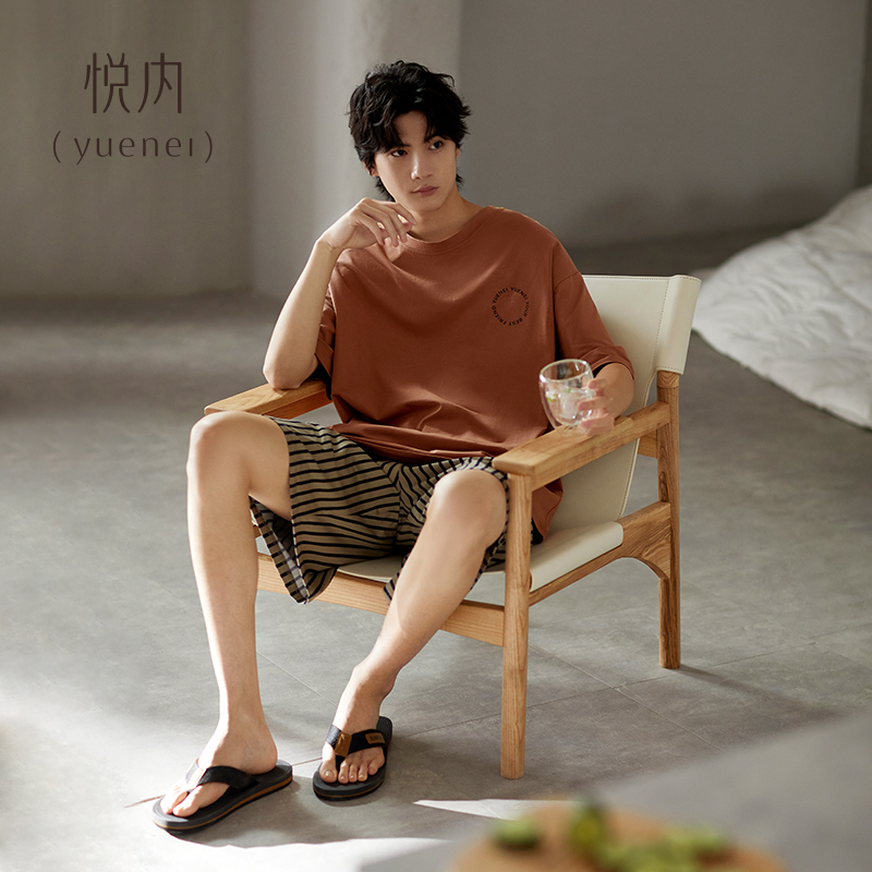 短裤 纯棉家居服男款 夏款 悦内睡衣男士 薄款 短袖 休闲可外穿大码 夏季