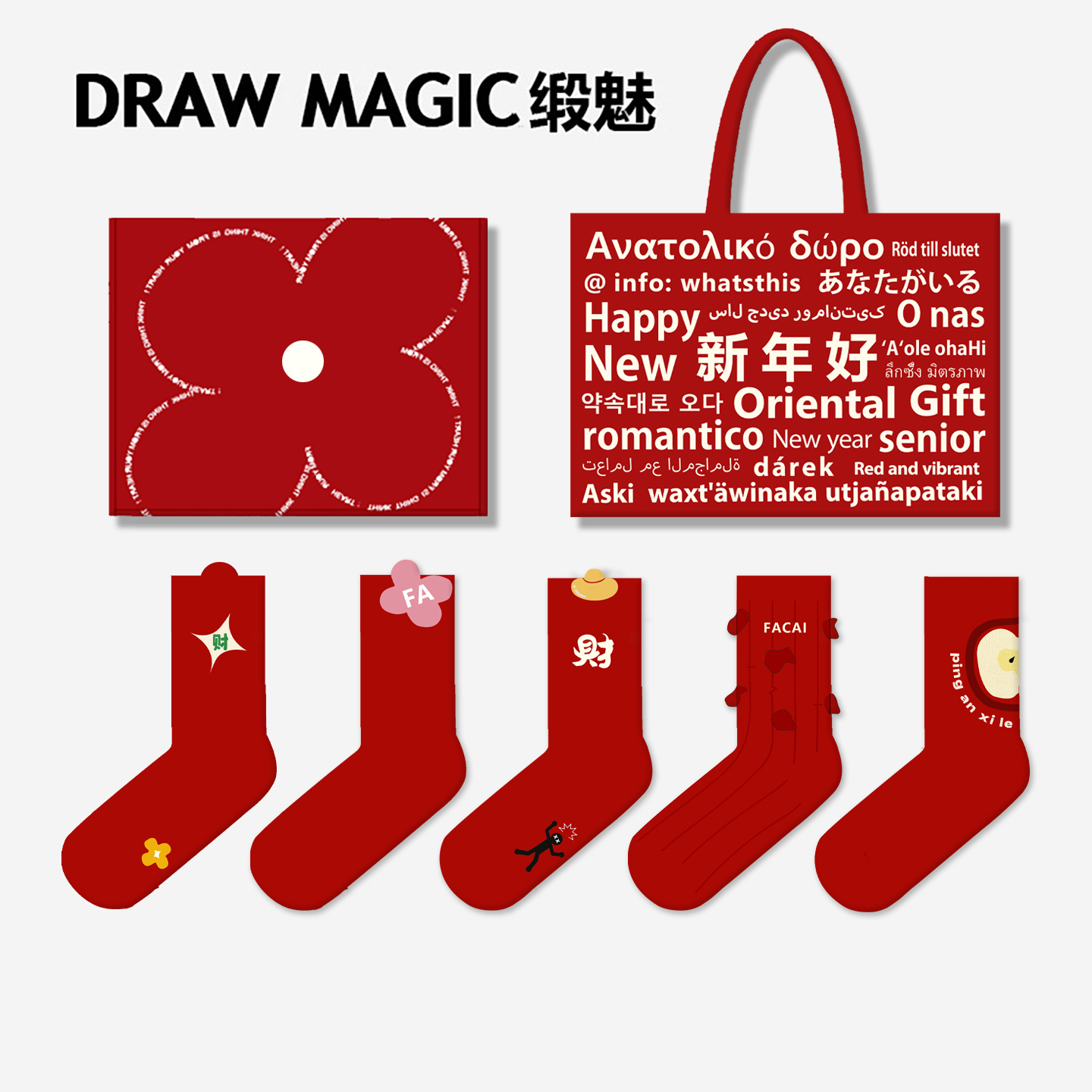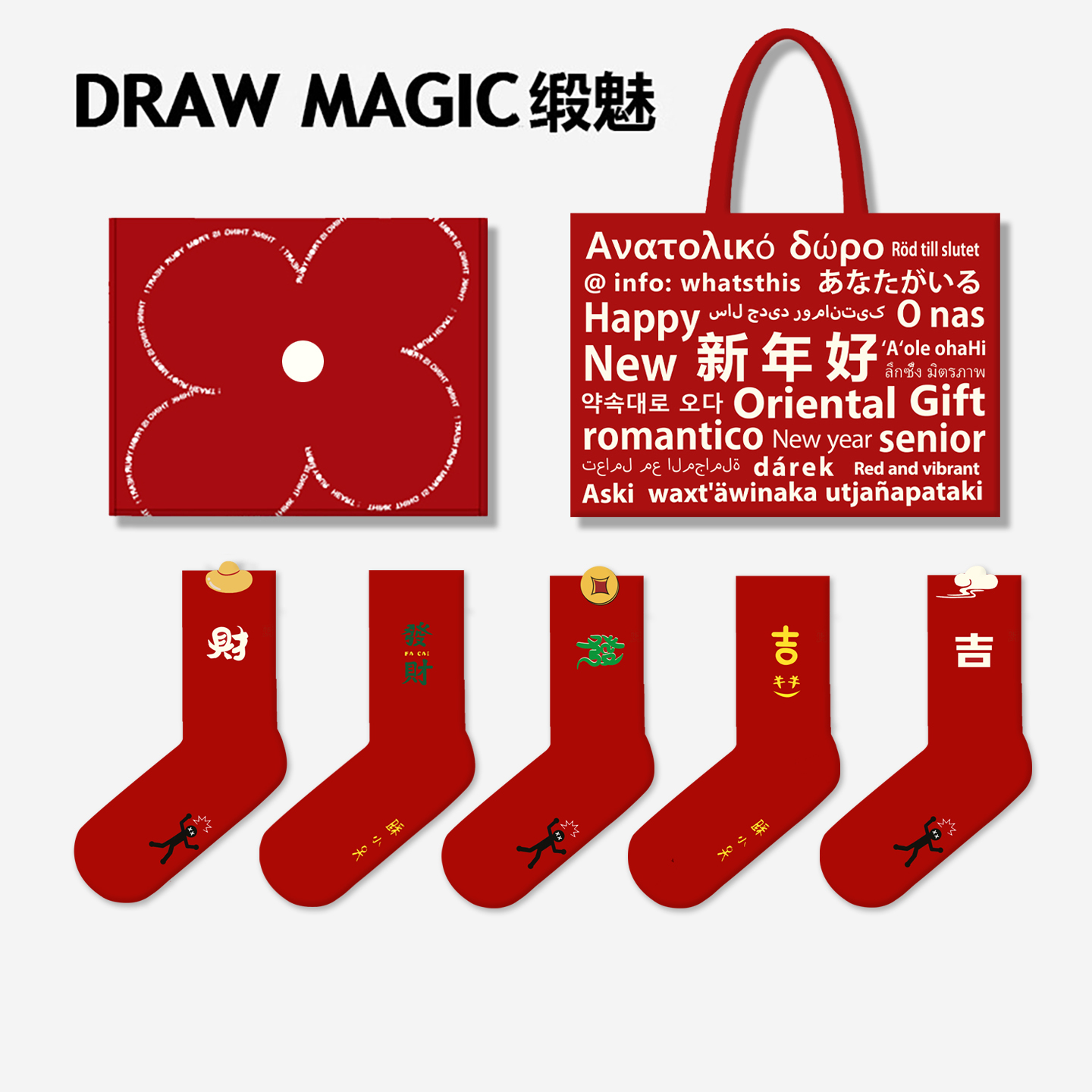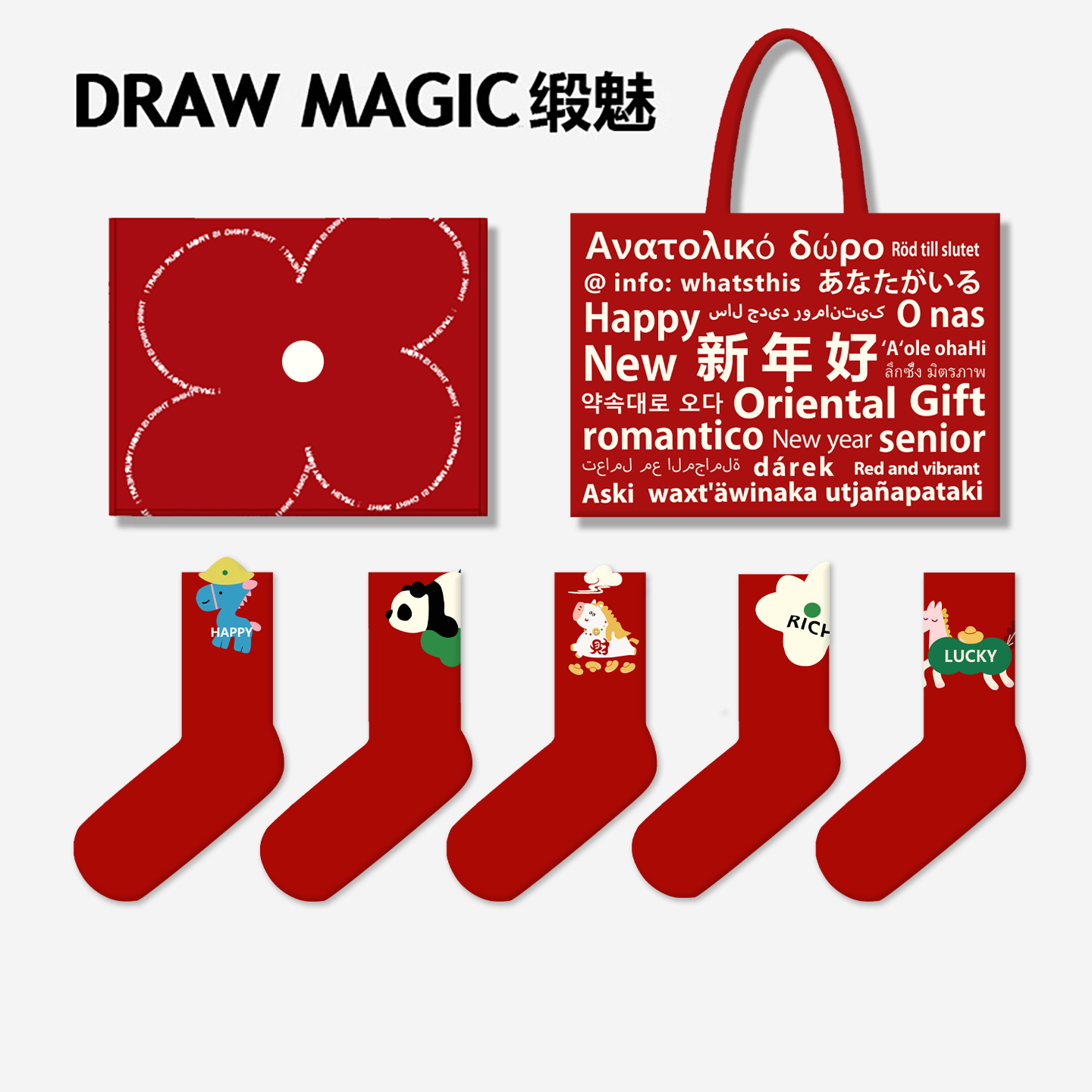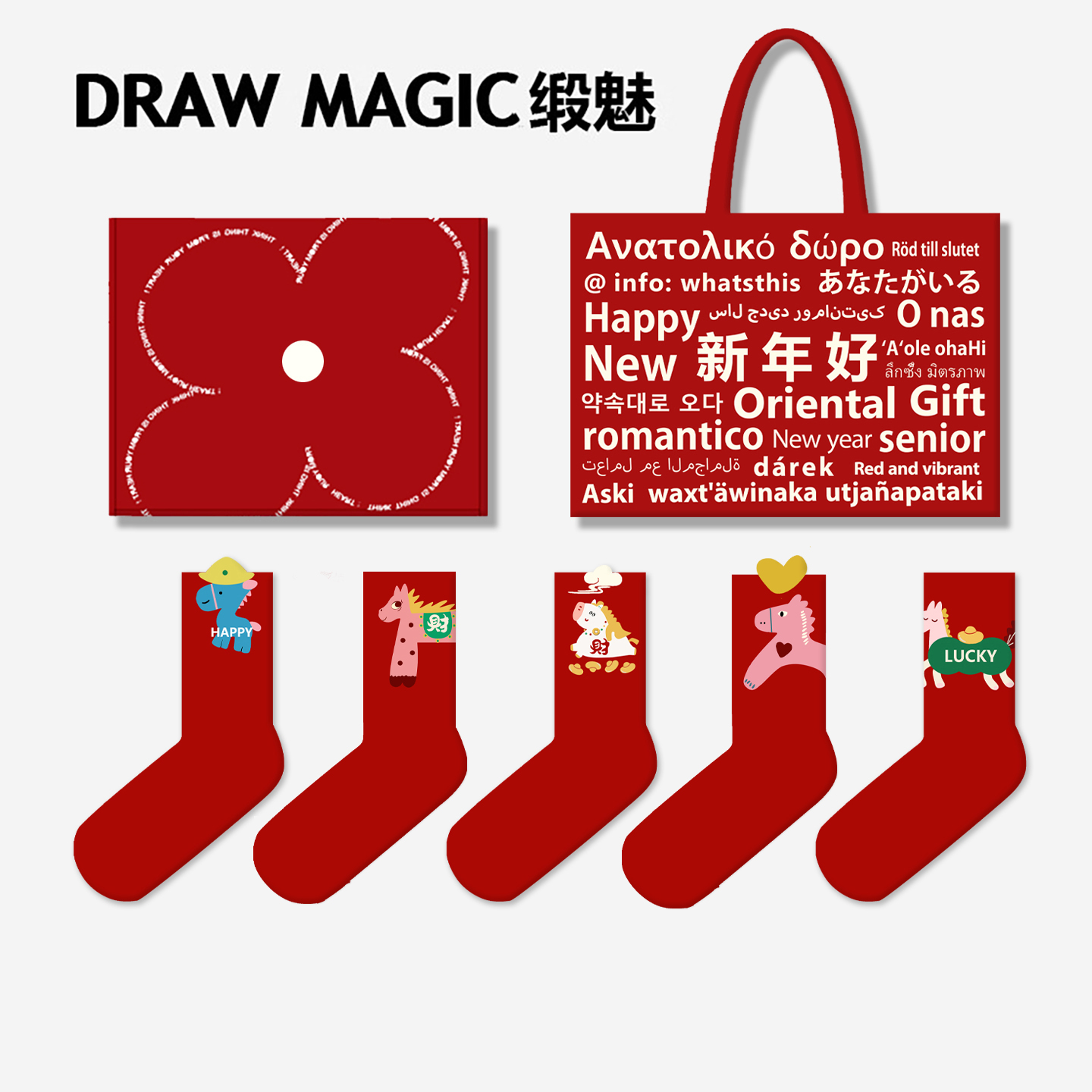 国潮2026马年红袜子本命年袜子男女中筒袜红色新年袜礼盒过年长袜