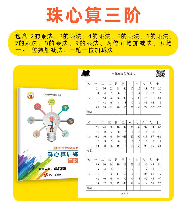 一二三四五六阶珠心算题练习册珠算初高年级教材第小学贝比贝尔珠心算训练教材全套幼儿幼儿园初级练习练题数学思维培养益智游戏书