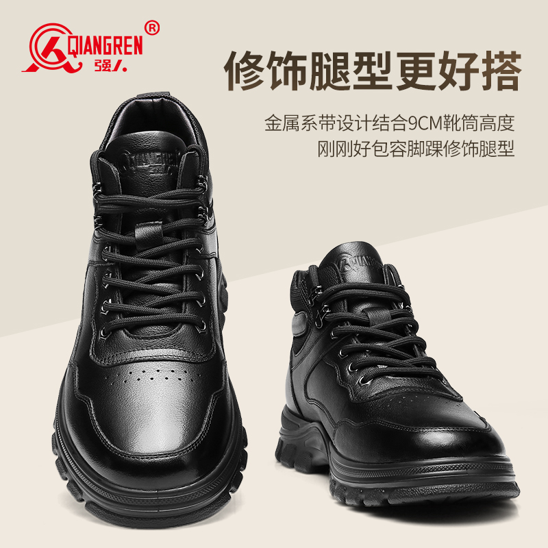 运动鞋 高帮休闲鞋 秋冬新款 子学生厚底男鞋 皮面鞋 征服鸿星尔克板鞋