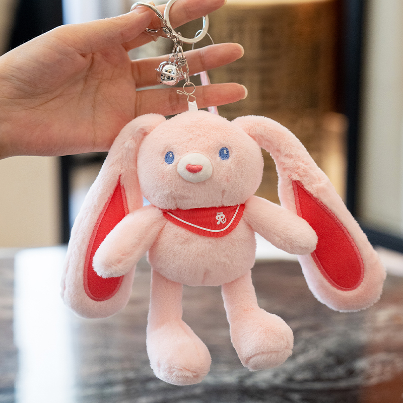 网红抽拉兔子钥匙扣挂件拉耳兔玩偶小号毛绒公仔书包背包包挂饰链