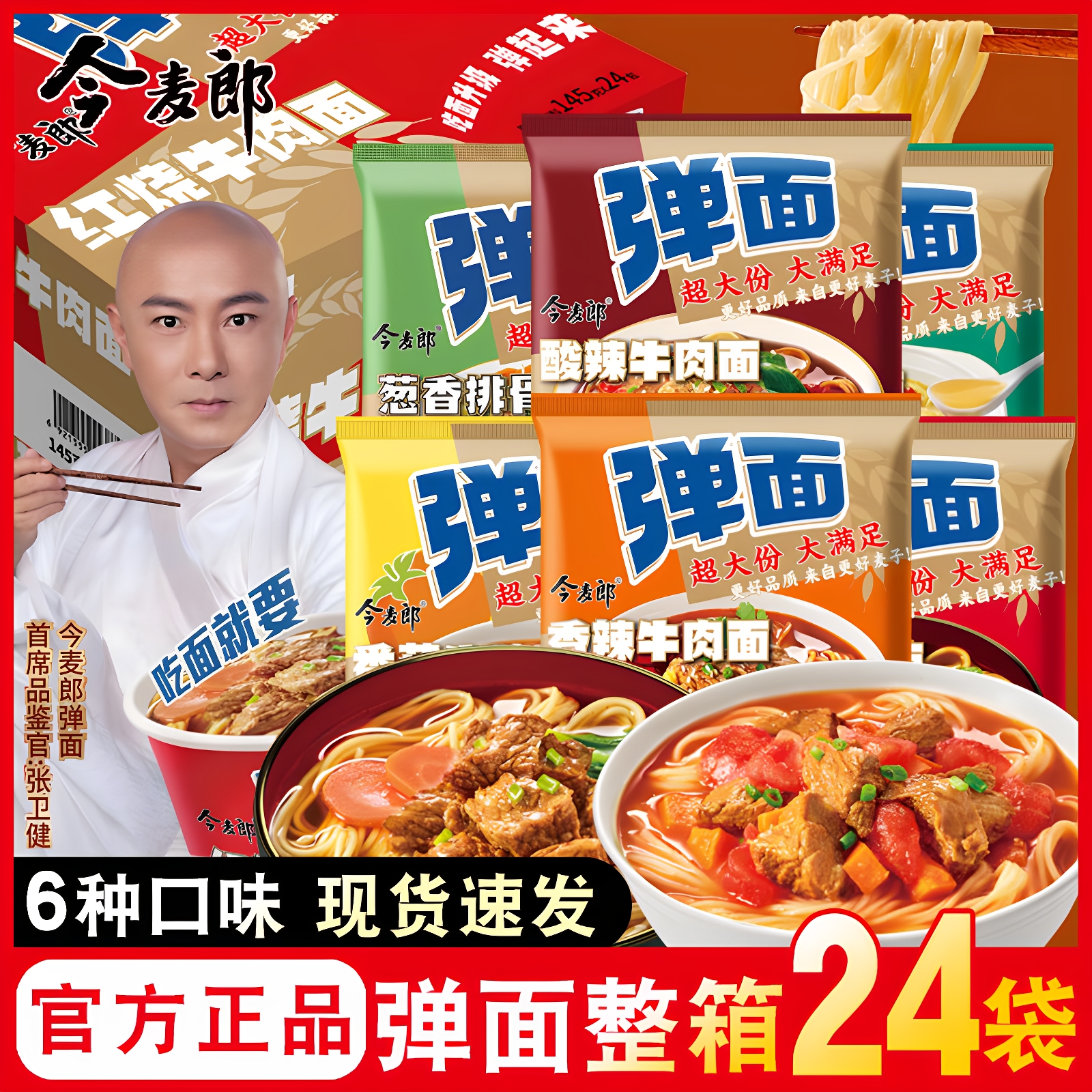 今麦郎弹面方便面泡面袋装 红烧牛肉番茄牛腩葱香排骨面宿舍速食