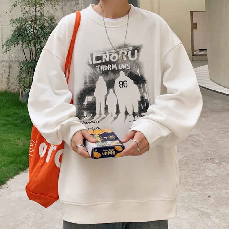 长袖 宽松慵懒风套头衫 卫衣外套 印花卫衣男女款 秋冬保暖美式