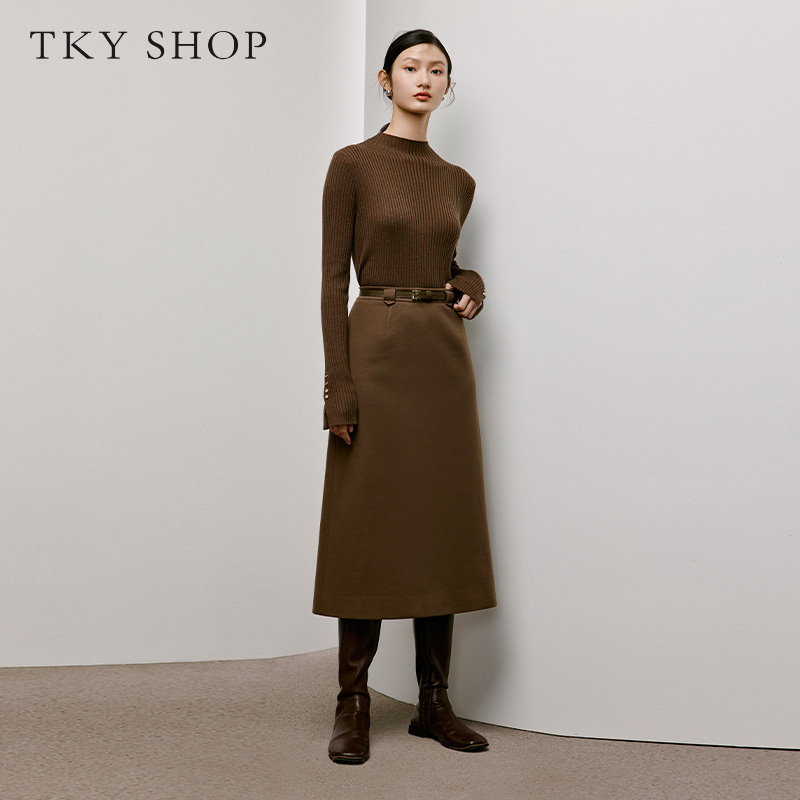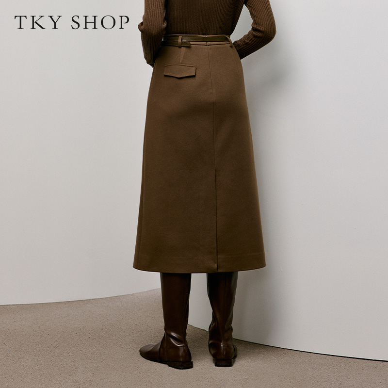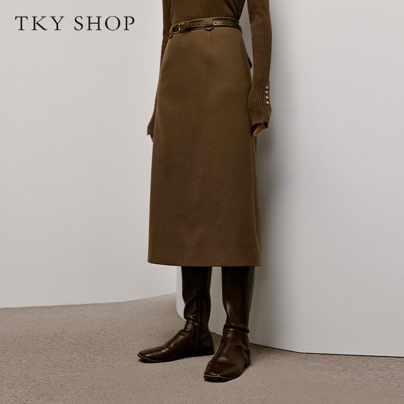 咖色包臀长裙 高级感黑色中长款 毛呢直筒半身裙女春秋冬季 2025新款