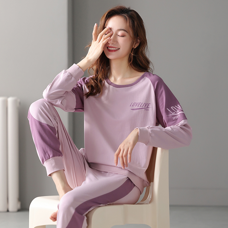 家居服薄款 秋冬款 冬季 睡衣女士春秋款 套装 纯棉长袖 大码 春秋季