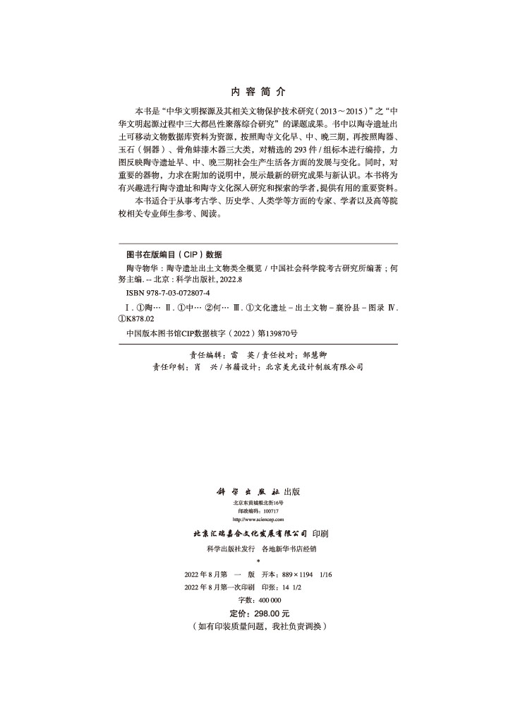 中国社会科学院考古研究所编文物保护技术研究陶器玉石铜器骨角蚌漆木器文物考古 陶寺物华陶寺遗址出土文物类全概览 2022新版
