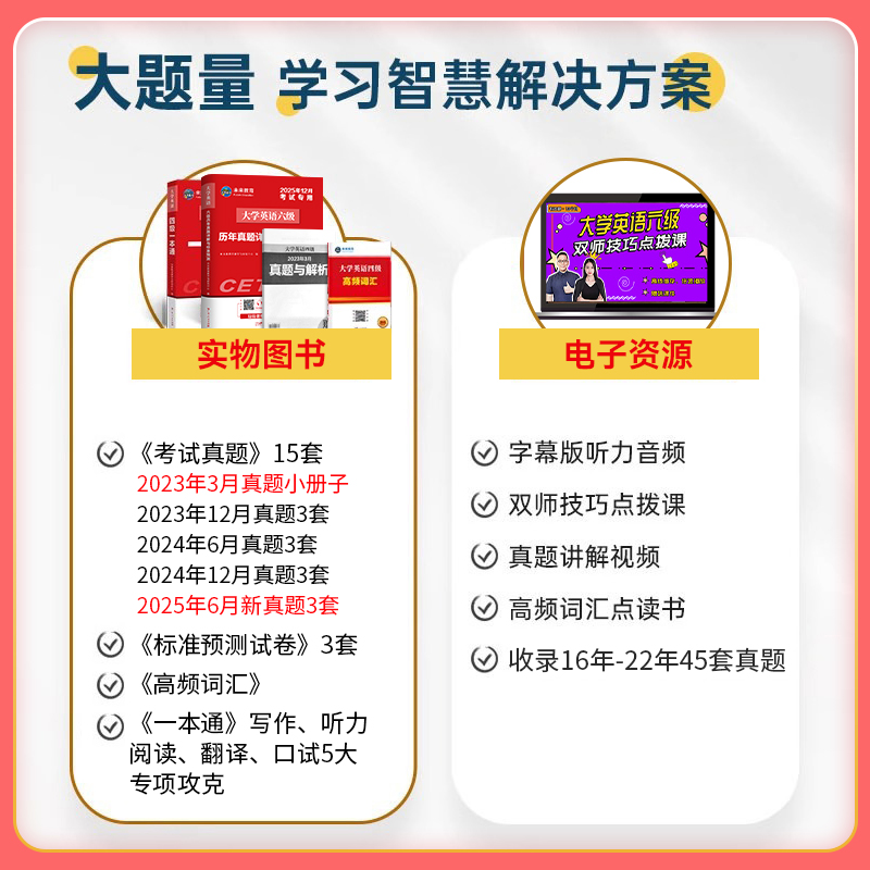 新版 2025年12月大学英语六级考试考试专用教材六级真题历年真题模拟试卷词汇书46级练习题库2025年6月四六级复习资料专项训练