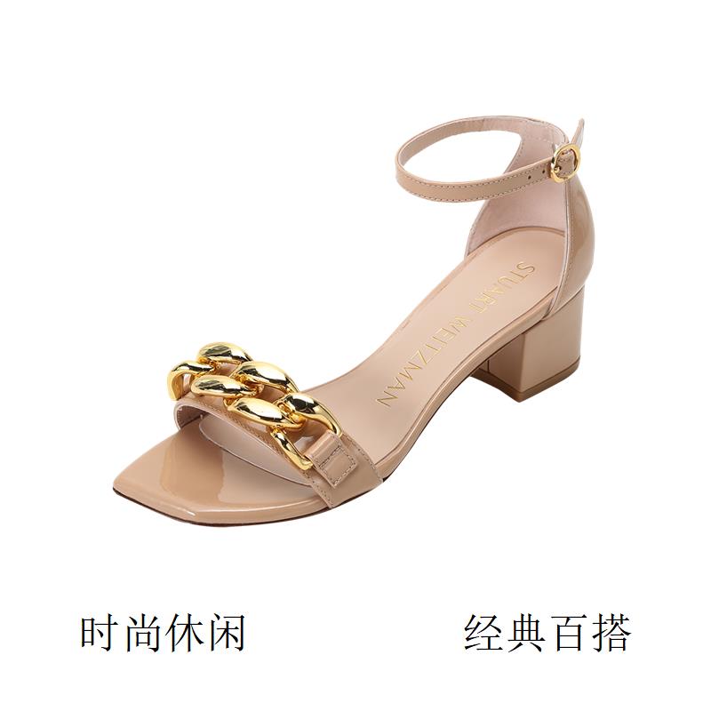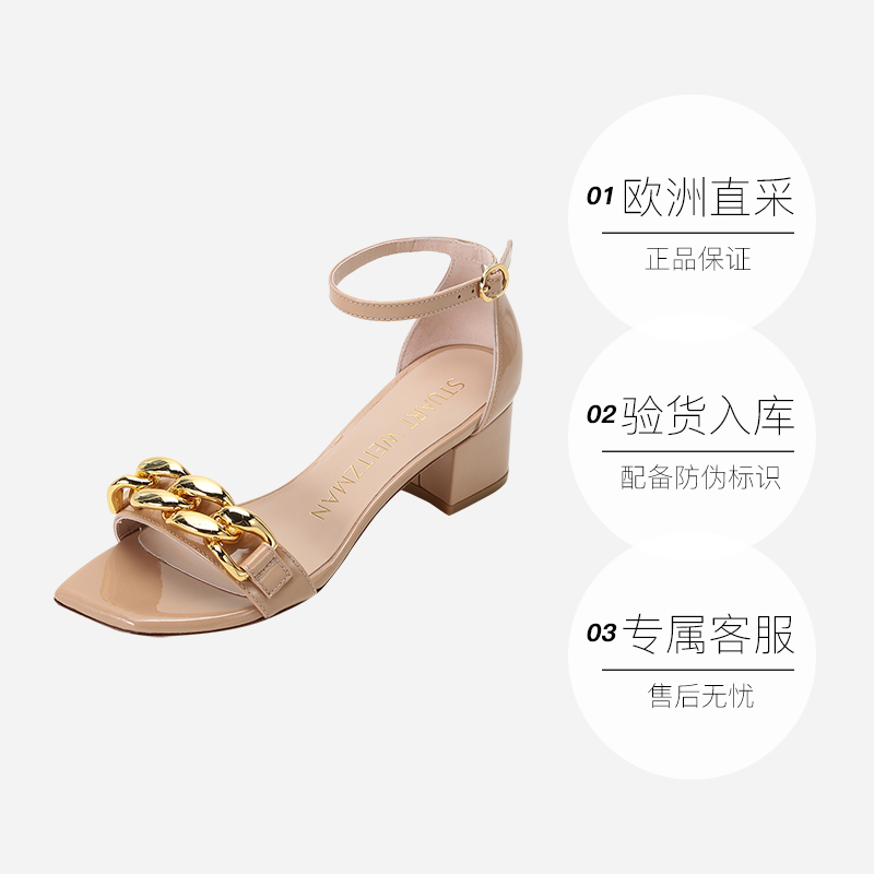 Weitzman女士皮革凉鞋 Stuart AMELINA BLCK CHAIN 自营