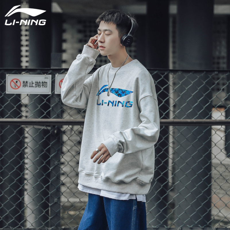 青少年官方旗舰运动长袖 安踏卫衣男士 圆领灰色套头衫 新款 T恤 秋季