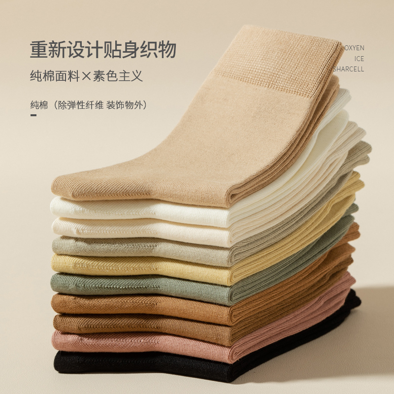 袜子女春秋纯棉中筒袜全棉防臭无骨棉袜棕色复古长袜2025新款 爆款