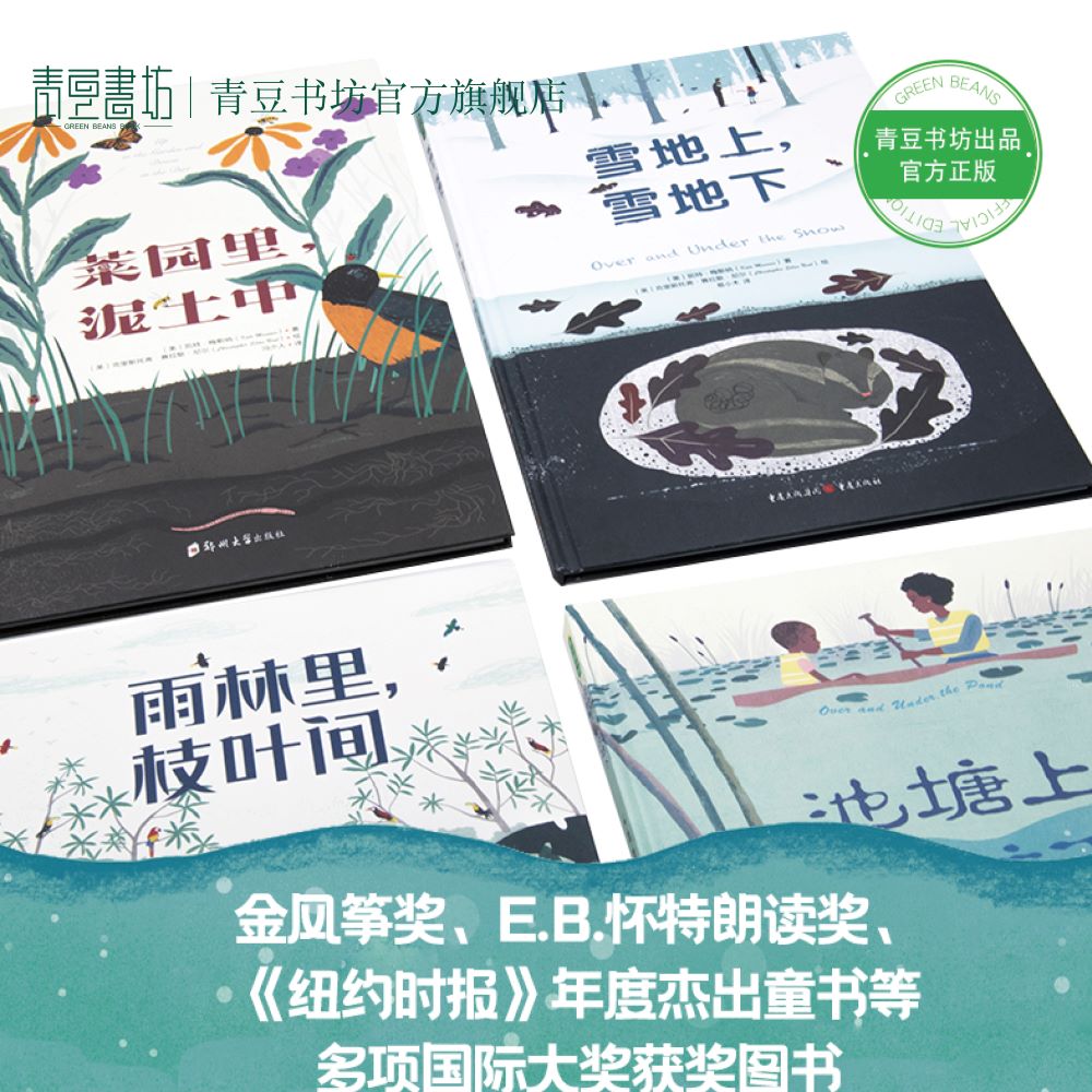 菜园里泥土中 雪地上雪地下系列 雨林里枝叶间 雪地上雪地下 池塘上池塘下自然科普绘本童书4岁以上亲近自然感受生命之美 全4册