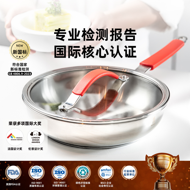 莱德斯304不锈钢26cm单柄煎锅无涂层少油烟家用煎炒一体丝带锅