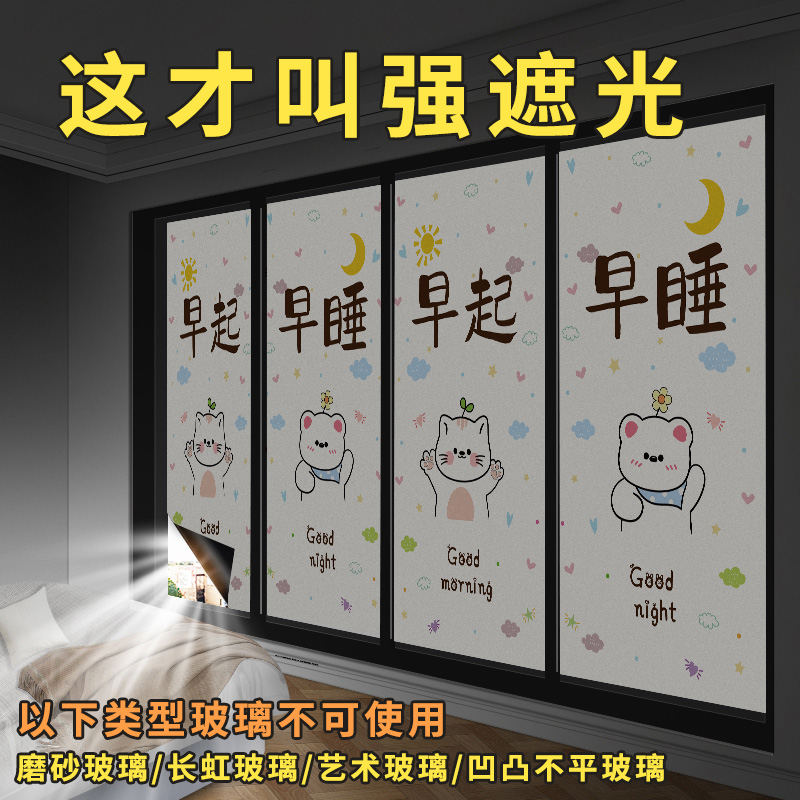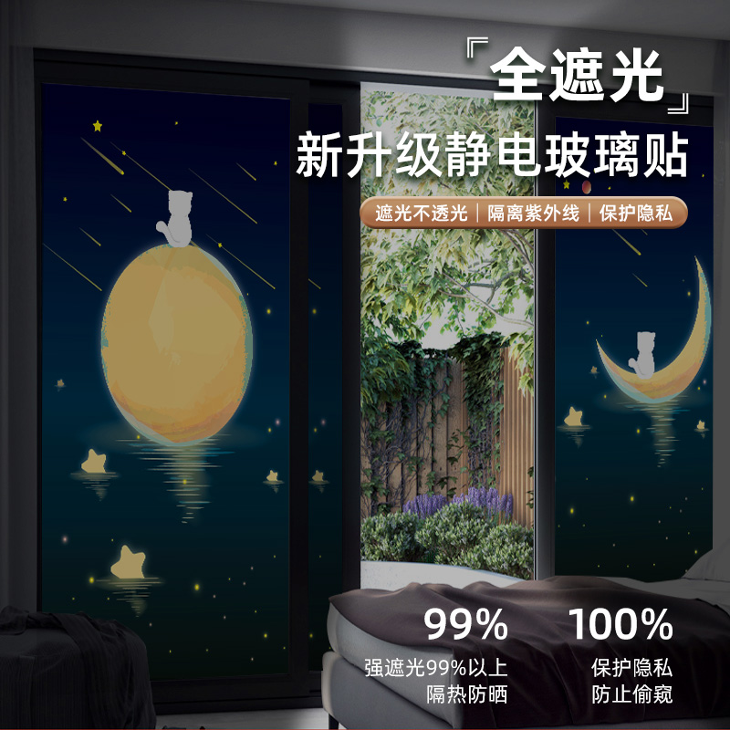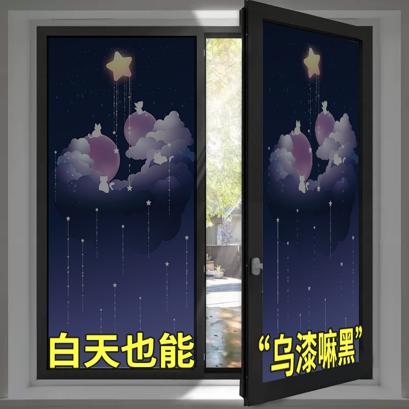 遮光贴纸窗户防窥膜遮阳神器防晒隔热玻璃贴纸全遮光门窗挡光不透