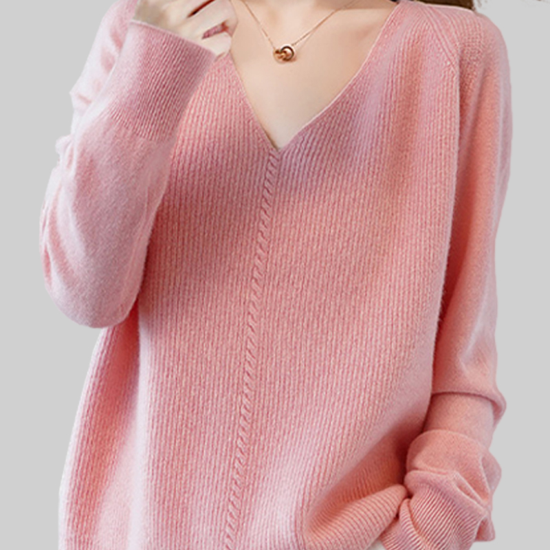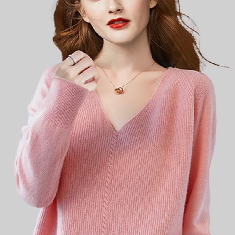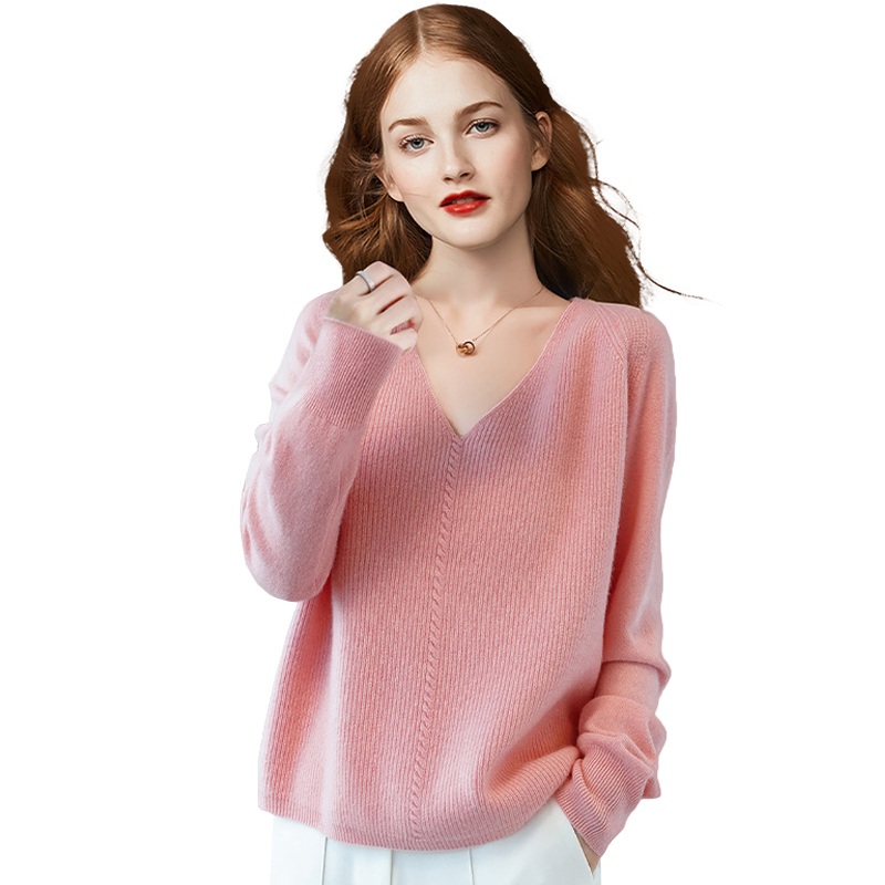 纯色奶系内搭上衣 套头长袖 2025年秋冬V领毛衣宽松短款 打底针织衫