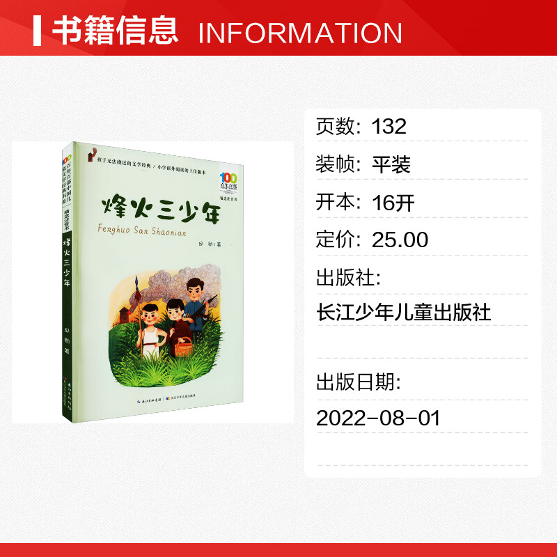 故事绘本连环画 爱国主义革命传统教育小学生一二三年级课外阅读物图书抗日英雄 烽火三少年彩图注音正版 百年百部儿童文学红色经典