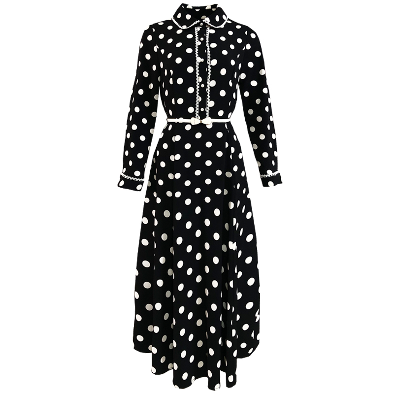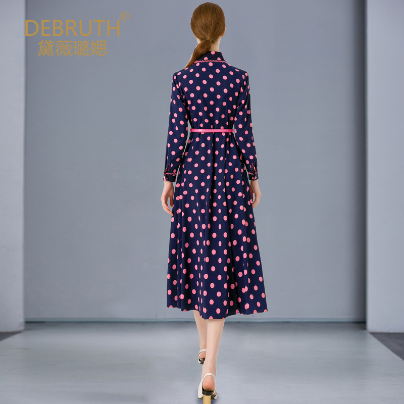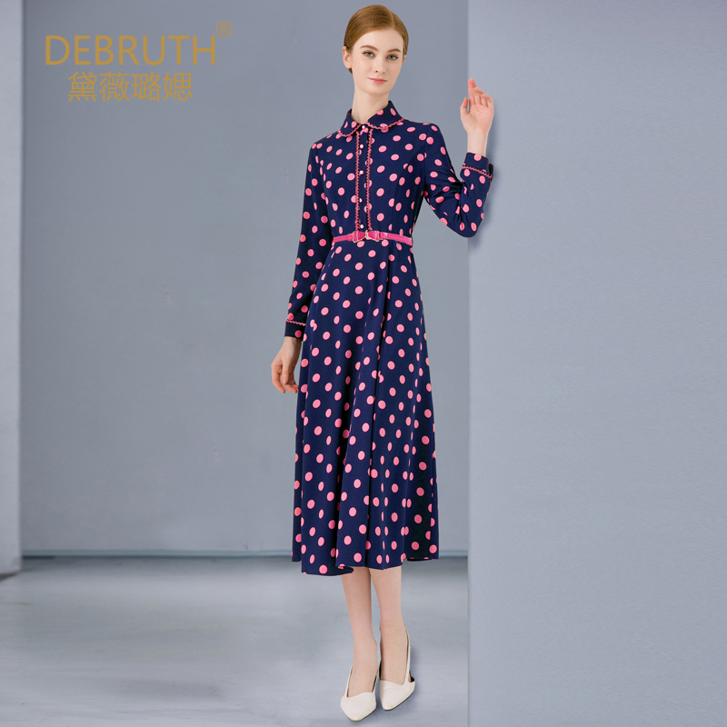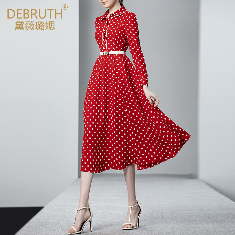 气质收腰A裙 法式 黛薇璐媤娃娃领玫红波点长袖 连衣裙女2025秋新款